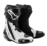 NEW ALPINESTARS SUPERTECH-R RACING BOOTS, BLACK/WHITE/VENTED, EUR-48/US-12.5